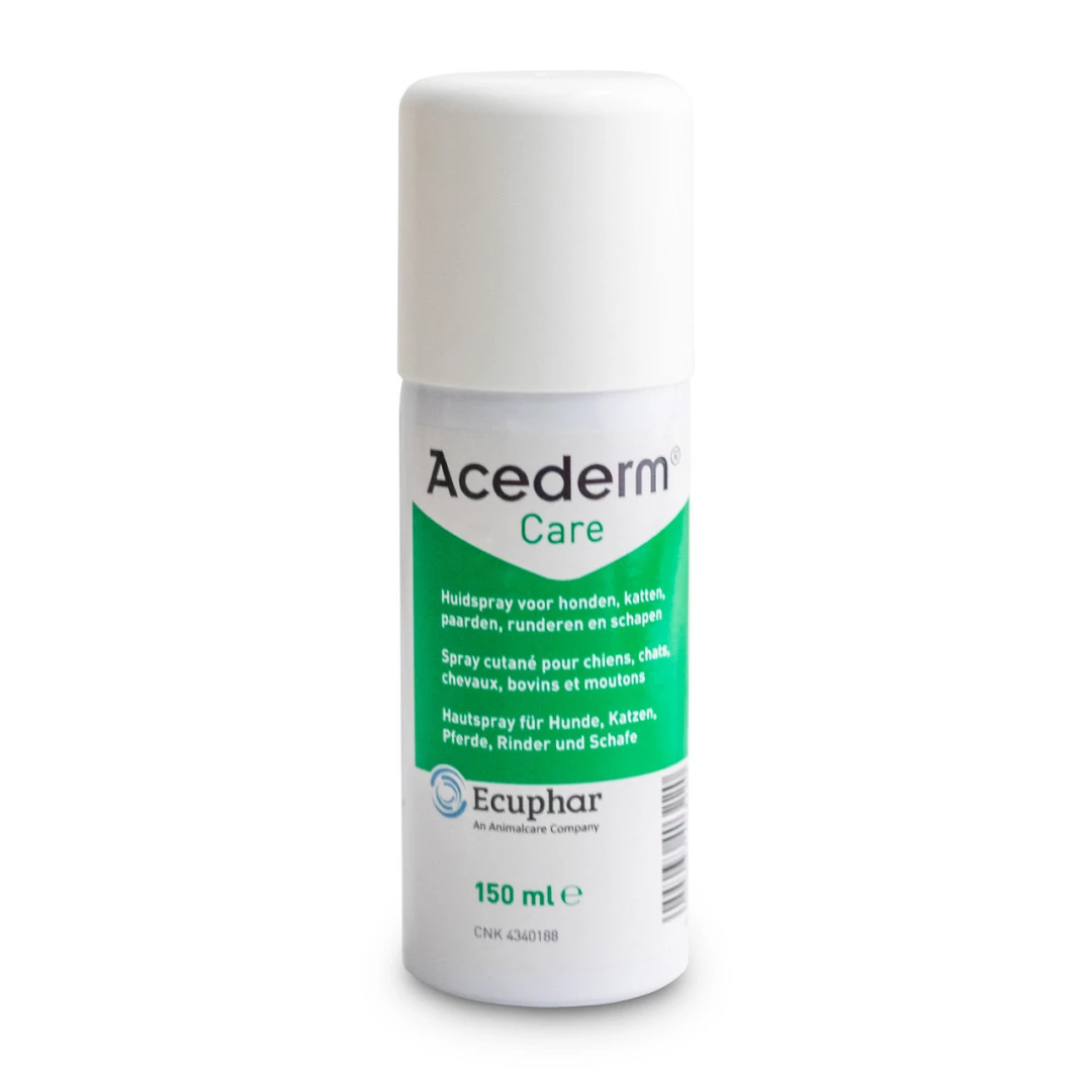 Acederm Care is een huidspray voor wondbehandeling, verwondingen, wild vlees, verhoorning, droge en vochtige mok, speenverwondingen en tepelaandoeningen, tussenklauwaandoeningen, nabehandeling van operatieve wonden.