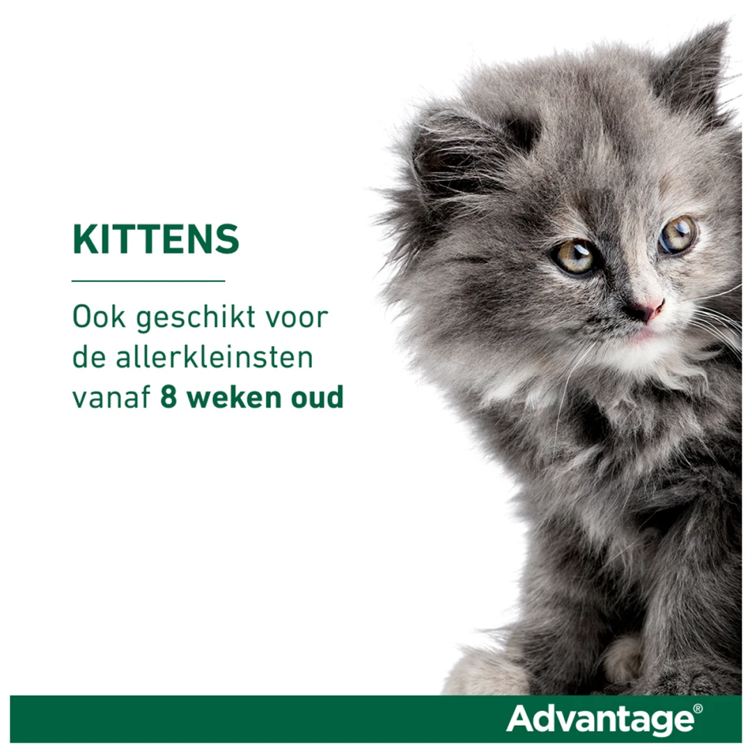 Advantage kat 40 behandelt jouw kat tegen vlooien en voorkomt herbesmetting gedurende 3 tot 4 weken. Advantage is een snelwerkend middel dat vlooien doodt. Advantage kat 40 is geschikt voor katten tot 4 kilogram. Als jouw kat vaak krabt, bijt of likt, kan het zijn dat ze een vlooienplaag hebben. Vlooien hechten zich aan de huid van jouw huisdier en drinken hun bloed. Ze kunnen zich snel verspreiden, dus hoe eerder je ze aanpakt, hoe beter!