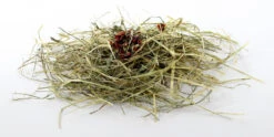 Het weidehooi is verrijkt met wortelstukjes en echinacea.