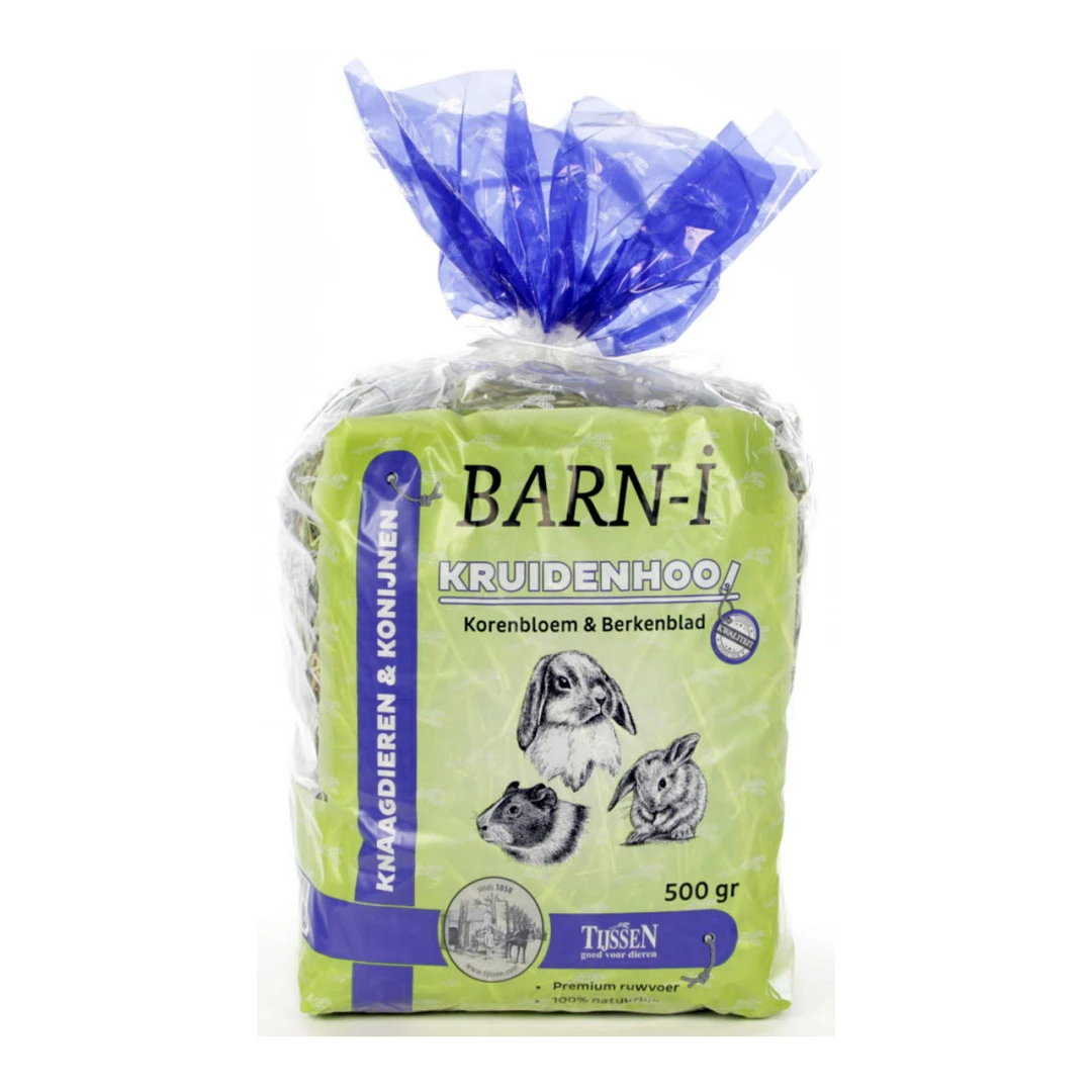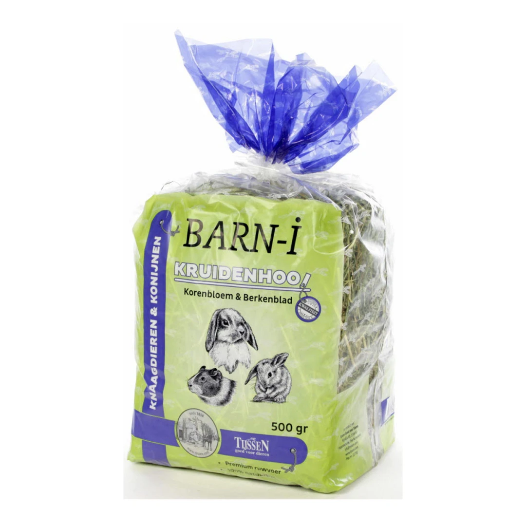 Het Barn-i Kruidenhooi Korenbloem & berkenblad is geschikt voor konijnen en knaagdieren.