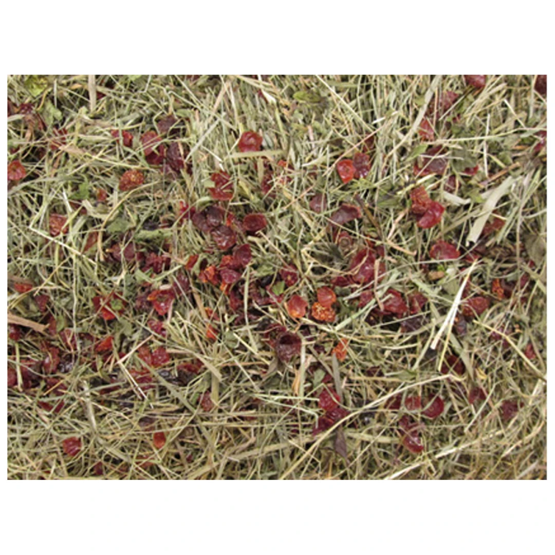 Het weidehooi is verrijkt met rozenbottel en pepermuntblad.