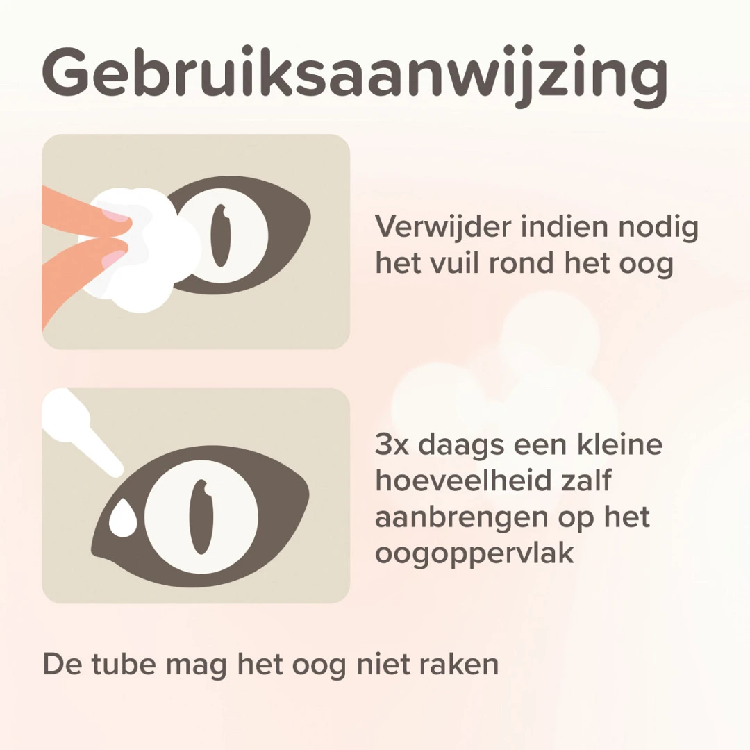 Bevat vitamine A 1x daags een kleine hoeveelheid oogzalf, na het reinigen van het oog, op de rand van het ooglid aanbrengen.