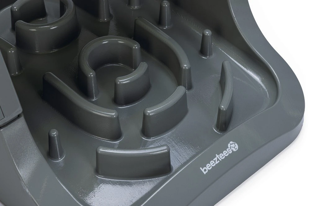 Beeztees Hondenspeelgoed Brain Game Rodar is een te gek denkspel voor de hond. Het trainingsspel is gemaakt van plastic en beschikt over twee rollers waar hondensnoepjes in verstopt kunnen worden. Zodra jouw hond aan deze rollers draait, met zijn of haar poot of snuit, kunnen de snoepjes uit de rollers vallen. Ze worden geleverd met drie verschillende klepjes. De klepjes hebben een, twee of drie gaten, zo kun jij zelf de moeilijkheidsgraad bepalen. Zodra het hondensnoepje uit de snack roller valt, komt dit terecht in het antischrokgedeelte. Ook hier dient jouw hond weer tussen de diverse uitstulpingen op zoek te gaan naar zijn of haar beloning.