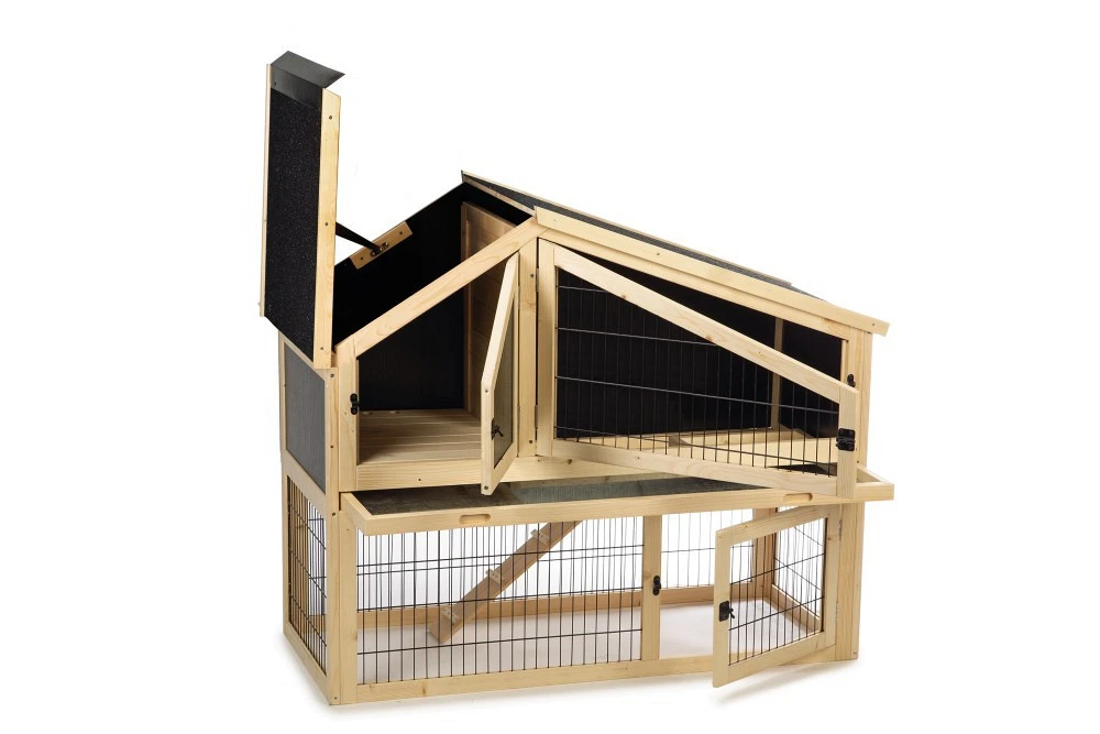 De kooi bevat drie deuren en de linkerkant van het dak kan ook worden opengemaakt. Hierdoor zijn er voldoende plekken waar jouw konijn in het hok kan worden geplaatst of eruit kan worden gehaald. De zinken lade die in het hok zit, kan er volledig worden uitgehaald. Dit maakt het schoonmaken van het hok nog eenvoudiger.