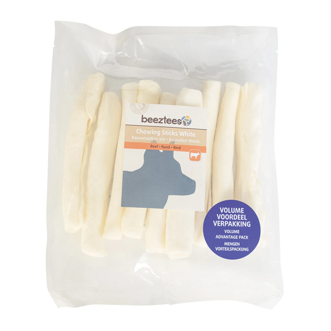 Overheerlijke Beeztees kauwstaafjes van runderhuid. Deze snack zal met veel plezier door jouw hond onder handen genomen worden. Ca. 20 minuten per dag kauwen werkt gebitsreinigend. Te geven als beloning, of gewoon als tussendoortje.