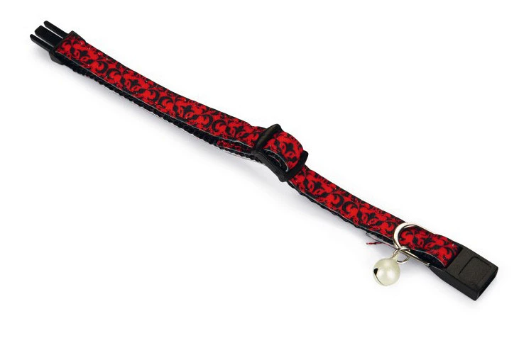 Nylon halsbandje met veiligheidssluiting en een belletje.