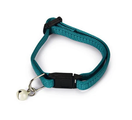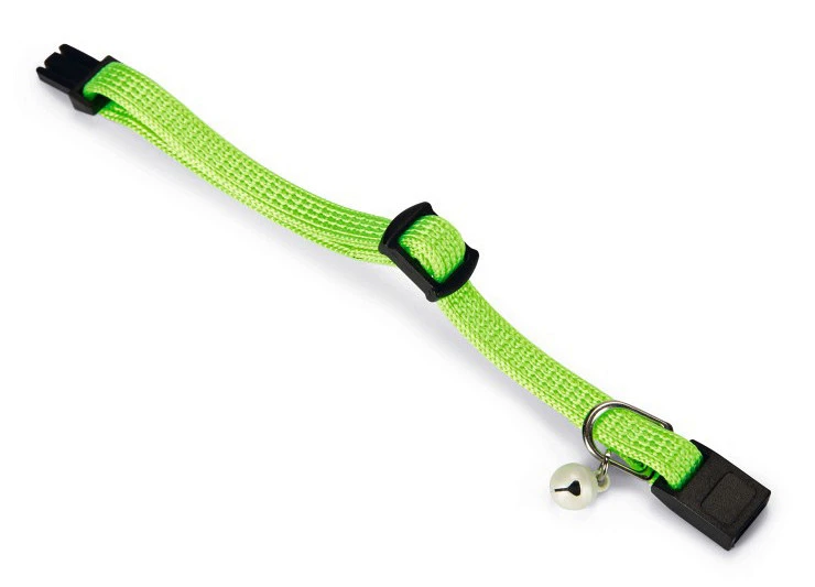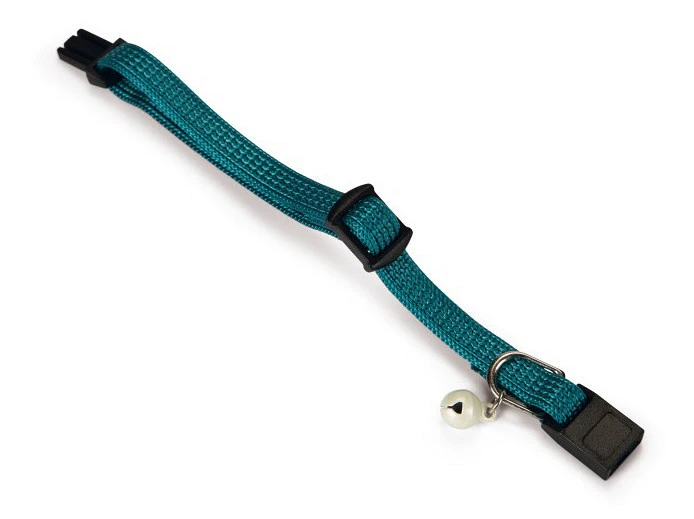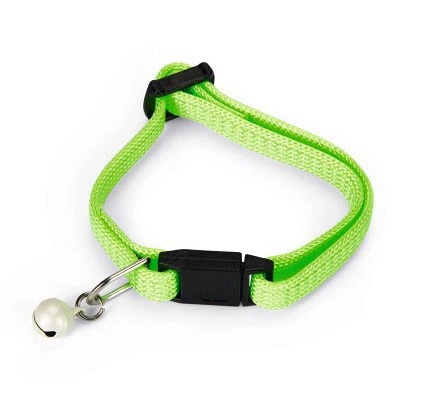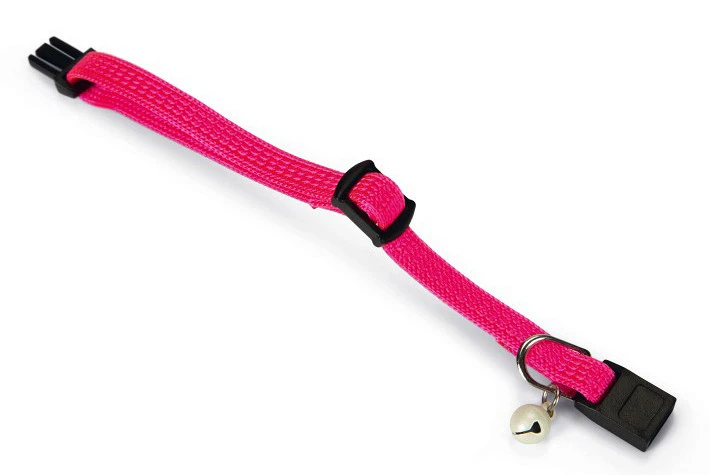 Nylon halsbandje met veiligheidssluiting en een belletje.
