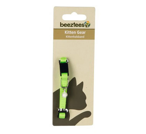 Met de Beeztees Kittenhalsband, valt jouw kitten echt op! Dit nylon halsbandje heeft een veiligheidssluiting, waardoor het bandje zeer veilig is voor jouw kitten. Zodra jouw kitten namelijk ergens achter blijft haken, schiet het bandje los. Dit voorkomt dat jouw kitten pijn krijgt. Bovendien is het bandje voorzien van een belletje, waardoor je jouw kat altijd aan hoort komen.