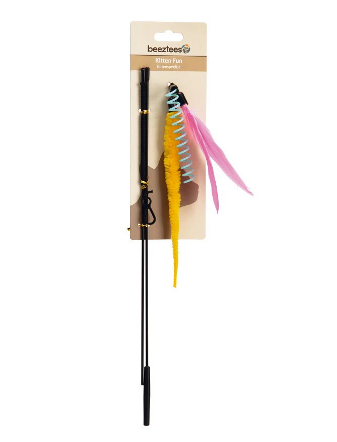 Met de Beeztees Kittenhengel Kocka kan er samen met jouw kitten worden gespeeld. Aan deze hengel kunnen 3 verschillende speeltjes worden bevestigd, zodat je dit af kunt wisselen en jouw kitten iedere keer weer kunt verrassen met een nieuw speeltje. Zo zijn er 2 verschillende veertjes die je eraan kunt bevestigen en ook een springveertje dat je aan het uiteinde van de kittenhengel kunt vastmaken.