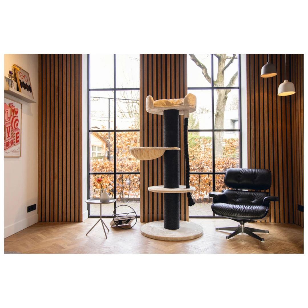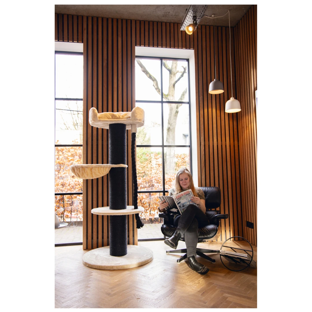 Een robuust krabmeubel met meerdere ligplekken voor jouw kat, dat is het Beeztees krabmeubel Havilo. Deze krabpaal heeft een extra dikke sisalstam, zodat de paal ook geschikt is voor grote en sterke krabbers. Via het plateau kan jouw kat naar het ligbedje klauteren om vervolgens bij de ligmand aan de bovenkant te komen. Deze ligmand is voorzien van opstaande randen en een lekker zacht kussen, voor extra comfort! Bovendien bevat deze paal ook een flostouw, wat voor zorgt voor extra speelplezier. Al met al, het ideale krabmeubel voor een stoere en sterke krabber.
