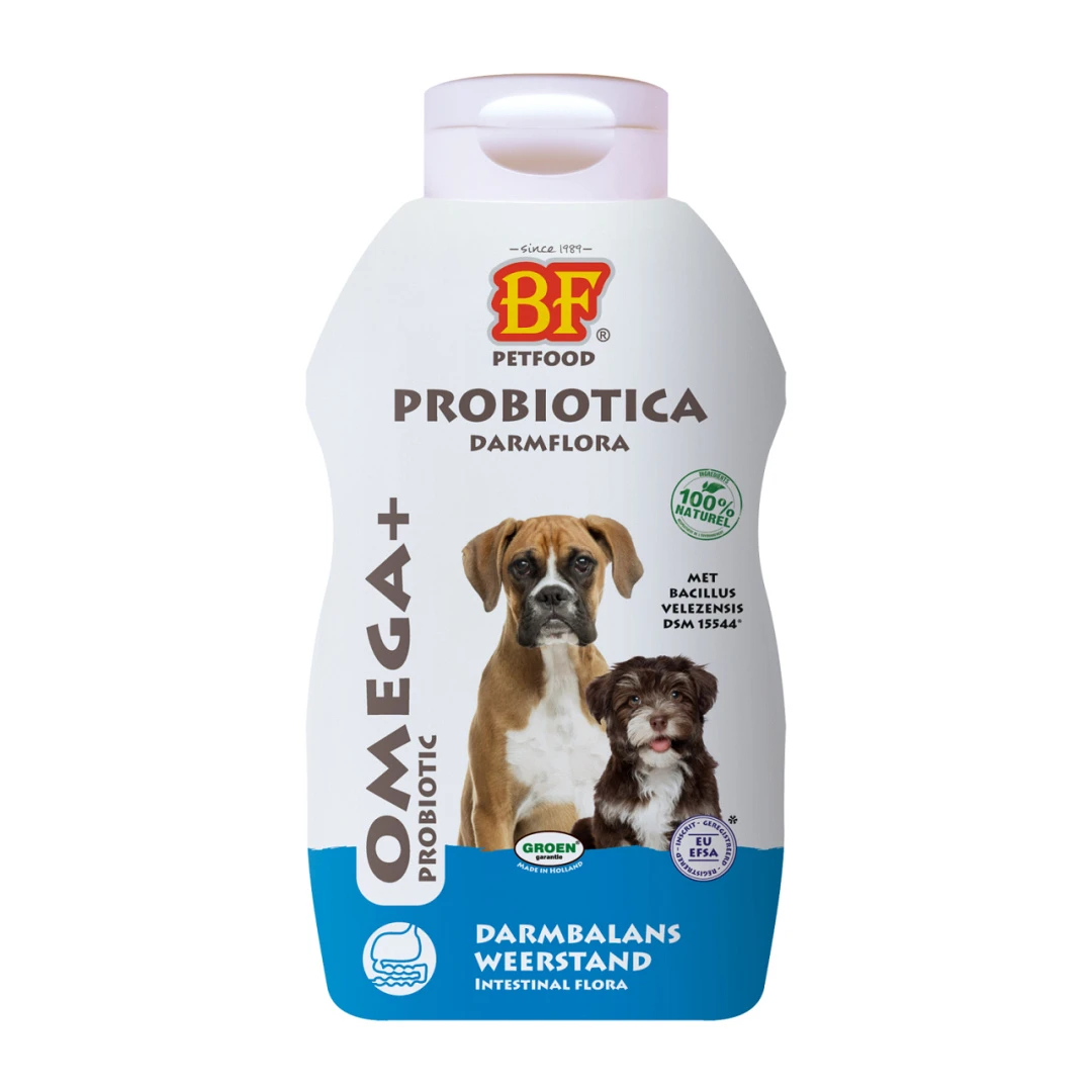 Vloeibaar probioticaproduct wat zorgt voor een optimale darmbalans en algemene gezondheid van jouw hond.