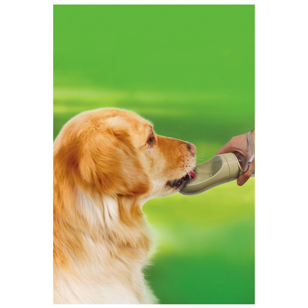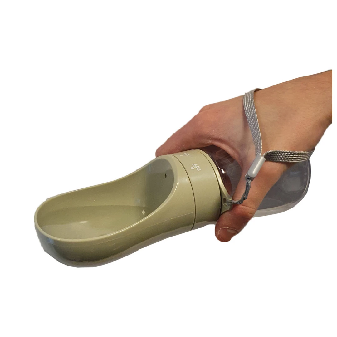 Handige huisdierendrinkfles voor onderweg. Water wat niet wordt opgedronken kan je weer terug laten lopen in de fles.