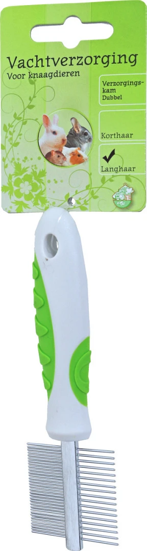 Deze Kam 2-Zijdig Middel/Grof verwijderd losse haren, vuil en eventuele klitten. De kam is voorzien van zowel korte als langere tanden.