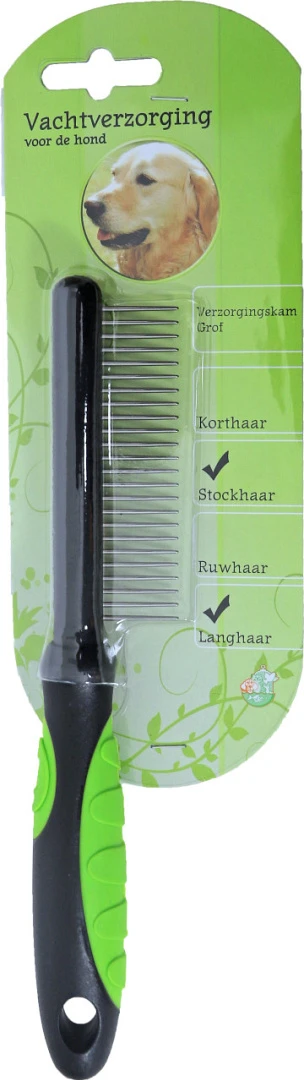 De kam grof verzorgt de vacht van jouw hond door deze los te maken, op deze manier worden losse haren, vuil en eventuele klitten verwijderd. Deze verzorgingskam is geschikt voor alle honden met een dikke vacht.