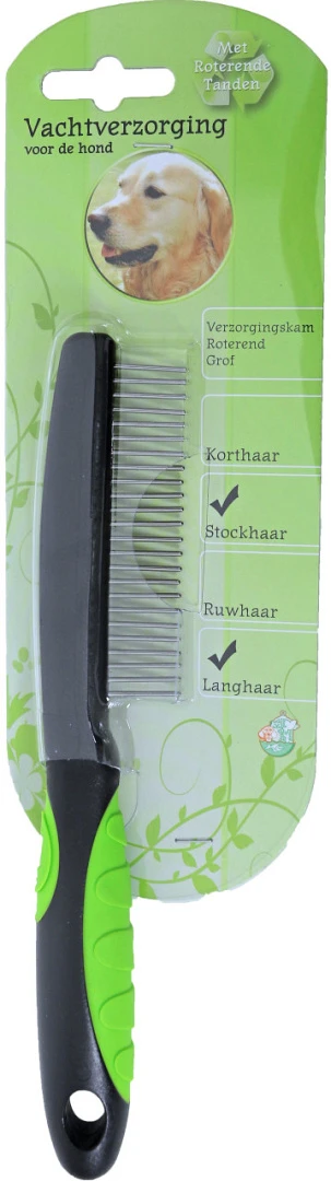 De kam roterende tanden grof verzorgt de vacht van je hond door deze los te maken, op deze manier worden losse haren, vuil en eventuele klitten verwijderd. Deze verzorgingskam is geschikt voor alle honden met een dikke vacht. Door de roterende tanden glijdt deze kam gemakkelijker door de vacht.
