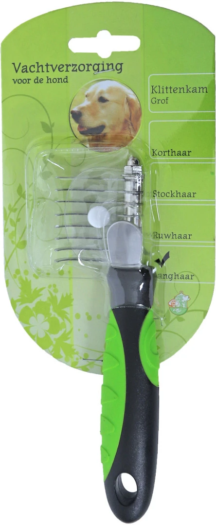De Klittenkam L-Vorm 8 Tanden verzorgt de vacht van jouw hond door middel van het verwijderen van klitten. Deze klittenkam is geschikt voor alle langharige honden met een dikke vacht. Deze klittenkam is geschikt voor zowel links- als rechtshandige gebruikers. Voor linkshandig gebruik dien je het moertje los te draaien en de mesjes en duimgreep in tegenovergestelde richting weer te monteren.