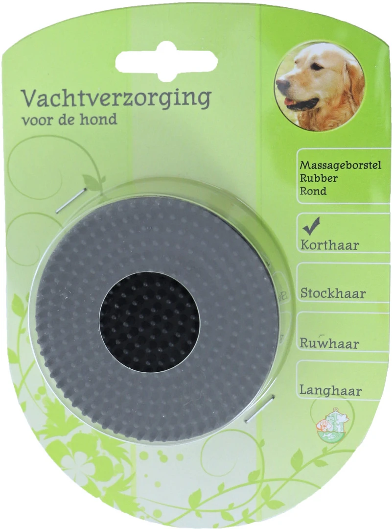 Verwen je hond eens met een heerlijke massage! Deze borstel is speciaal ontwikkeld om de vacht alsmede de huid van je hond te masseren. Door de ronde vorm en het handige handvat kun je je viervoeter een verdiende massage geven. De borstel is zwart en gemaakt van rubber.