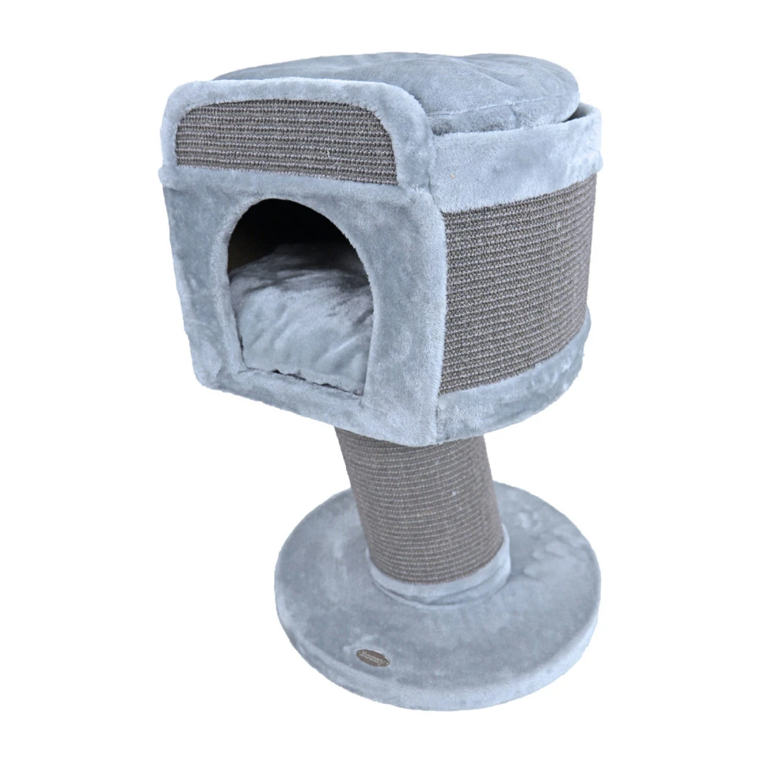 Krab-/klimmeubel op voet 1-gaats van Boony is een stevig, robuust, rond en multifunctioneel krabmeubel op stevige voet. Katten kunnen in, aan en op dit krabmeubel spelen, klimmen, krabben en slapen.