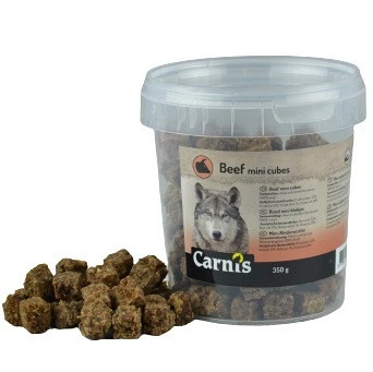 Carnis Rund Mini Blokjes zijn smakelijke snacks voor je hond. Door het handzame formaat zijn deze snacks ideaal als beloning tijdens het wandelen of om te gebruiken tijdens het trainen.