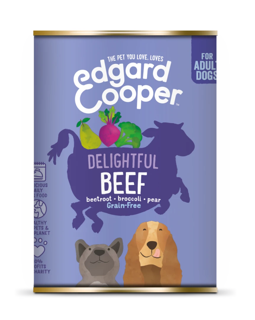 Edgard & Cooper hondenvoer Adult rund is gemaakt met een graanvrije recept en bevat véél rund met makkelijk verteerbare hoogwaardige eiwitten. In de voeding zit prebiotica voor een gezonde darmflora. En als bonus bevat dit recept extra voedzaam orgaanvlees (zoals hart en lever).