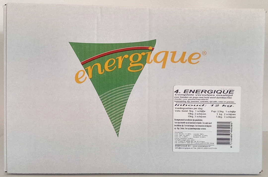 Energique Speciaal 4 is een complete vers vleesmaaltijd die is ontwikkeld voor honden met huid- en/of darmproblemen. Het is licht verteerbaar en belast het verteringsstelsel van jouw hond daardoor minimaal.