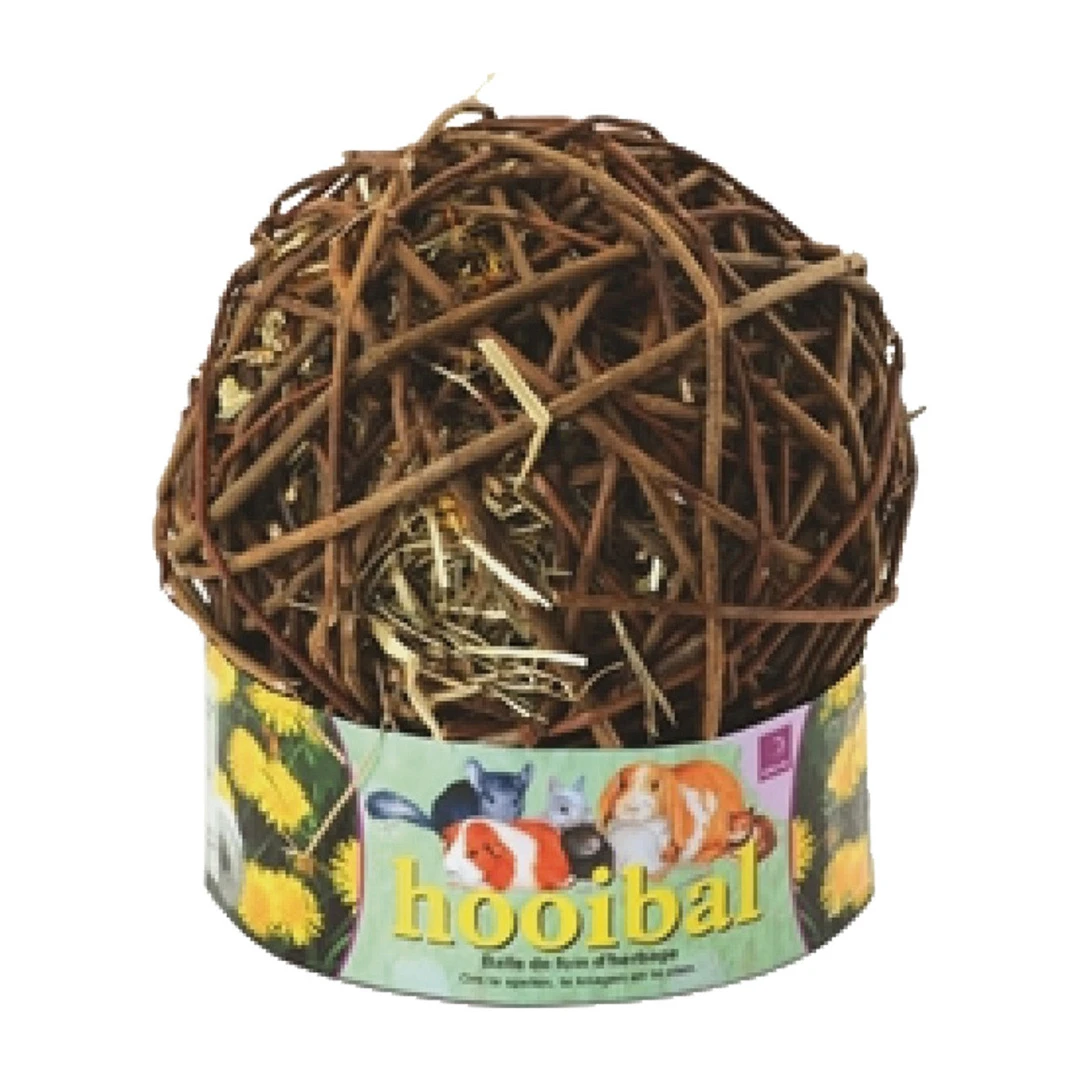 Bal van wilgenhout met bergweidehooi en goudsbloemen voor konijnen en knaagdieren. Afm. 14 cm.