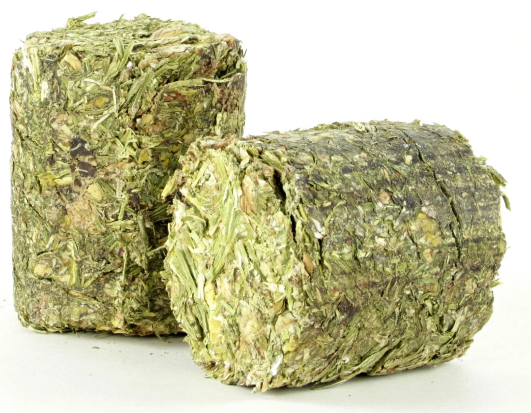 Samenstelling: Luzerne gedroogd ontbladerd, johannesbrood, gerstvlokken, maïsvlokken, spelt, lijnzaadkoek, gedroogde wortel, peterselie. bietenmelasse, bierbostel en biergist.