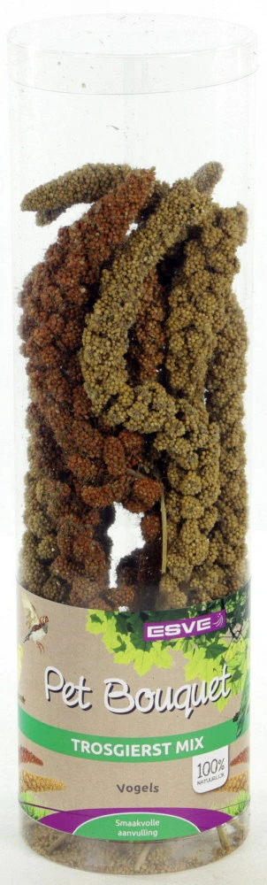 ESVE Pet Bouquet Trosgierst is een koker met een mix van verschillende trosgierst. Een smakelijke lekkernij voor alle vogels.