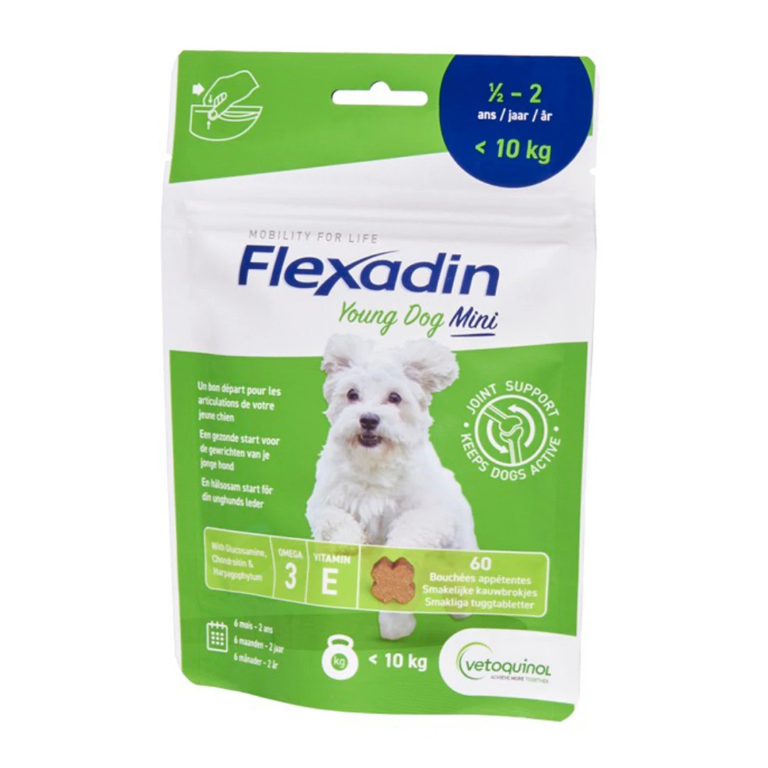 Opgroeiende honden vragen heel wat van hun gewrichten. Flexadin Young Dog is ontwikkeld, om de gewrichten in dit belangrijk stadium te ondersteunen.