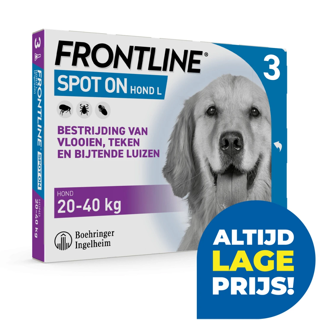 Frontline Spot On Large is geschikt voor grote honden van 20 tot 40 kg.