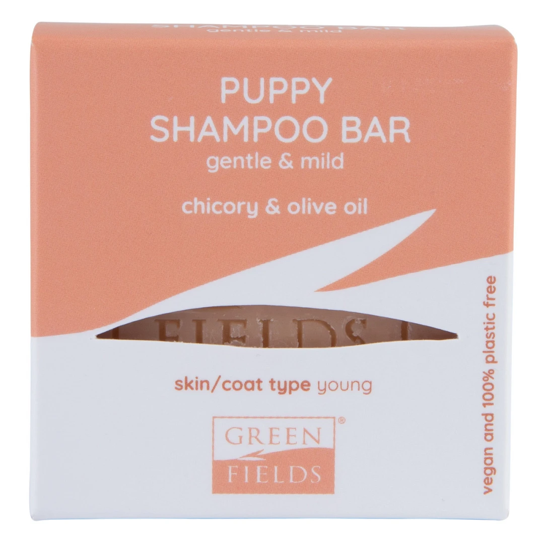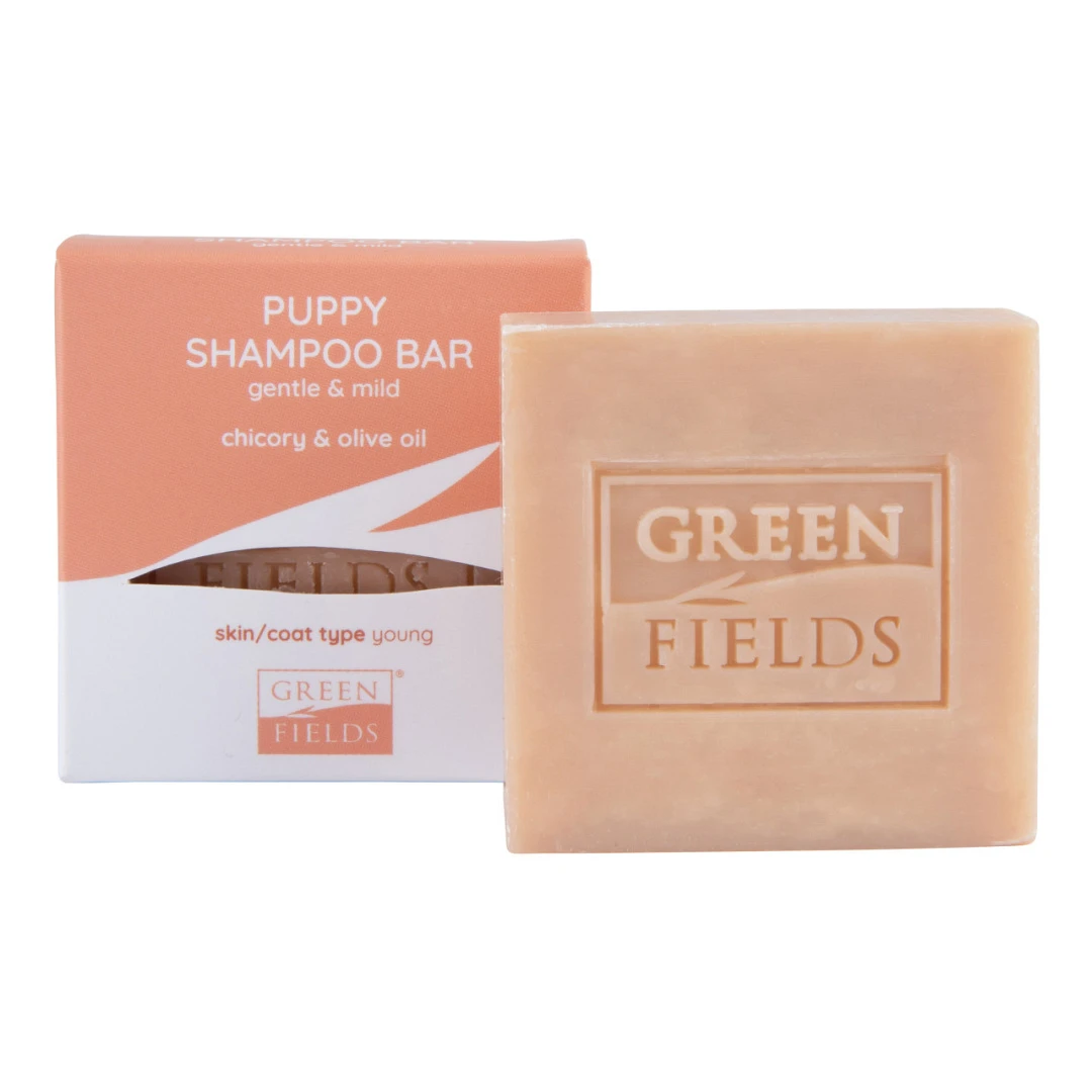 De Greenfields Puppy Shampoo Bar is een milde shampoo speciaal ontwikkeld voor puppy’s. De plasticvrije shampoo bar zit boordevol natuurlijke ingrediënten. Zo bevat het cichorei om de jonge vacht te beschermen en zorgt voor een natuurlijke glans. Olijfolie zorgt voor een natuurlijke hydratatie van de gevoelige en jonge huid. De shampoo bar is geschikt voor alle vachtsoorten. Jouw puppy ruikt hierna nóg lekkerder!