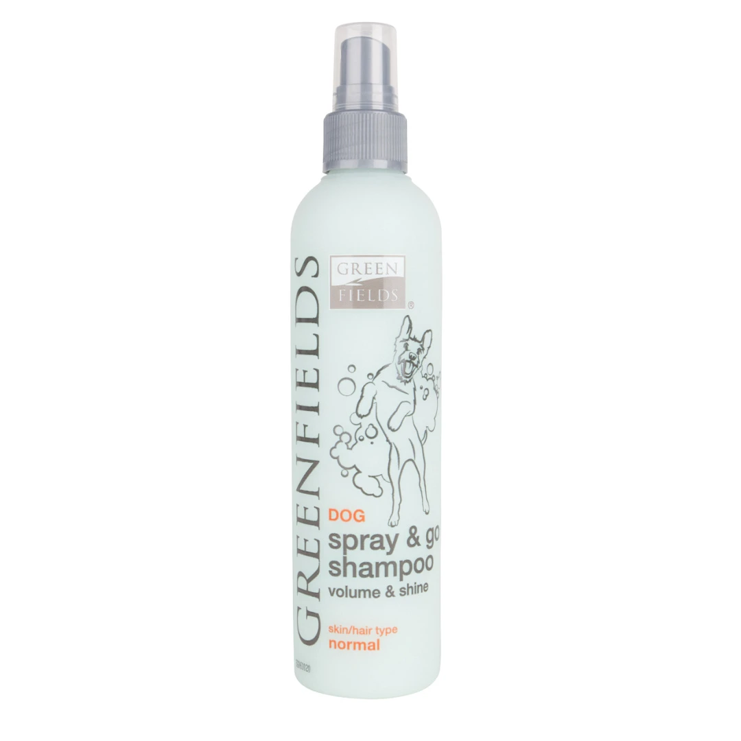 De Greenfields Spray & Go droog shampoo bevat de innovatieve formule “no water needed” en is daarom ideaal voor onderweg, op hondenshows of tussendoor. Simpelweg inspuiten, inmasseren en klaar! Daarmee is de Spray & Go ook een ideale accessoire voor op reis!