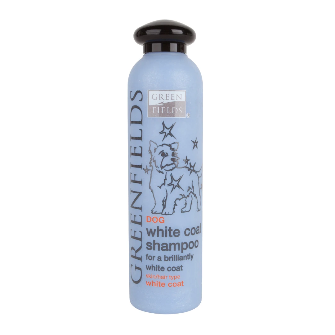 De luxe Greenfields White Coat Shampoo is de juiste keuze om een vieze witte vacht weer mooi wit te krijgen. Deze unieke formule versterkt de natuurlijke kleur en beschermt de vacht tegen vergeling. Daarnaast bevat de shampoo ook verzachtende componenten zoals extracten van kamille om de vacht optimaal te verzorgen en te beschermen tegen uitdroging.