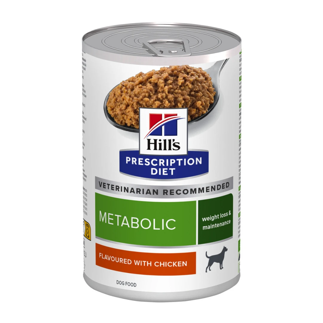 Hill’s voedingsdeskundigen en dierenartsen hebben Prescription Diet Metabolic ontwikkeld om honden te helpen gewicht te verliezen en daarna in vorm te blijven. Het werkt op een natuurlijke manier met het unieke energieverbruik van jouw hond voor een eenvoudig en effectief gewichtsverlies. Dit voer stimuleert het natuurlijke vermogen van het lichaam van je hond om vet te verbranden en levert energie om actief te spelen. De unieke vezelmix helpt honden een vol en voldaan gevoel te geven. Het is zelfs zo dat 96% van de honden thuis binnen 2 maanden was afgevallen met Prescription Diet Metabolic.* Dit natvoer in blik is gemaakt met kip en heeft een onweerstaanbare smaak waar je hond dol op zal zijn.