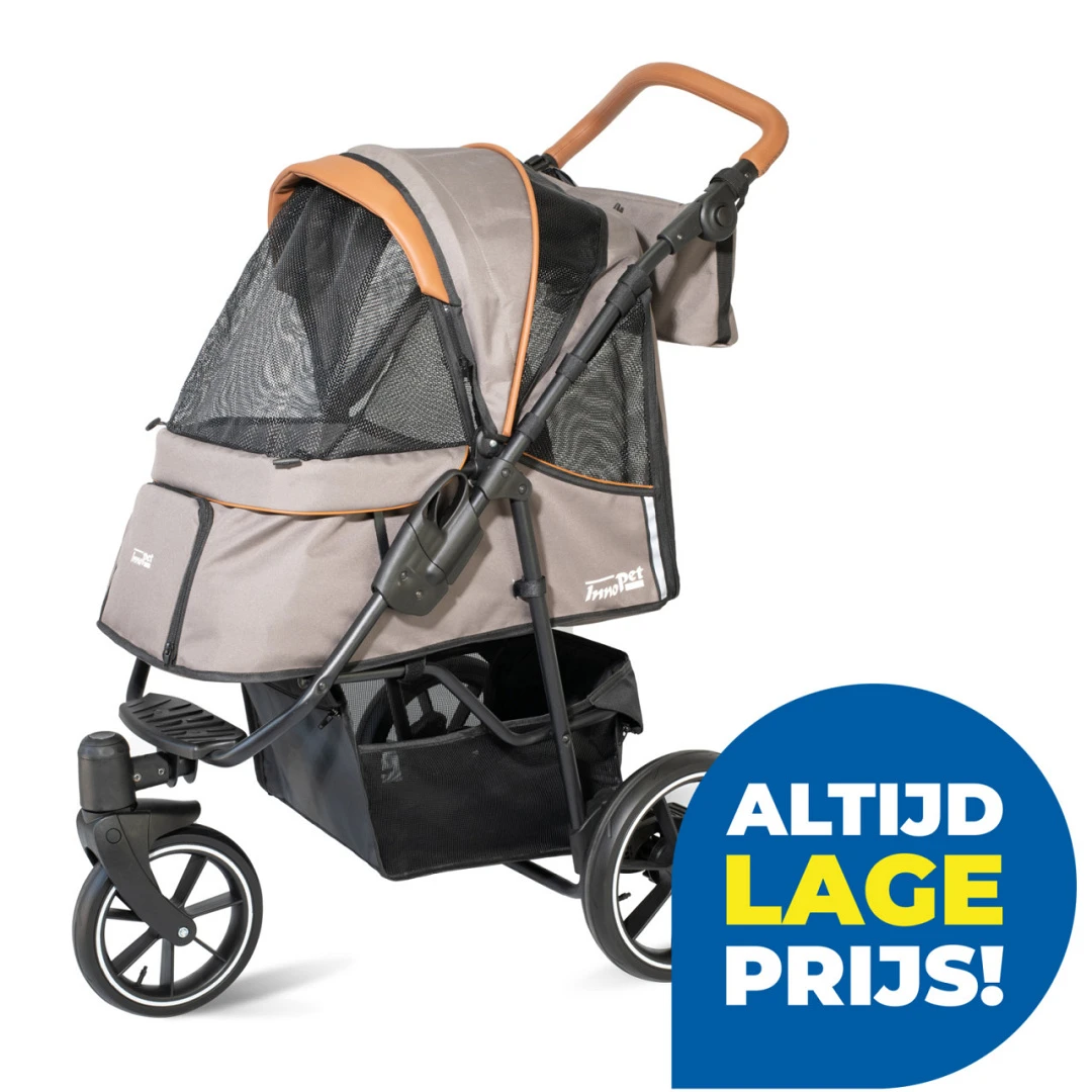 Innopet Hondenbuggy Premium Cozy kan tot maximaal 25 kg belast worden. De Premium Cozy is gemaakt met een soepele vering op de achterwielen en een extra dik matras, zodat elke schok van de wandeling wordt opgevangen en het comfort naar een hoger niveau wordt getild. Je hond die lijdt aan artrose, of beperkt is in zijn of haar mobiliteit zal echt tot rust komen in dit eersteklas product, dat wielen heeft van PU-materiaal waardoor elke beweging soepel aanvoelt. Niet alleen je hond, maar ook jij zult onmiddellijk voelen dat dit een premium product is welke met slechts 9,5 kg ook nog eens extreem licht van gewicht is!