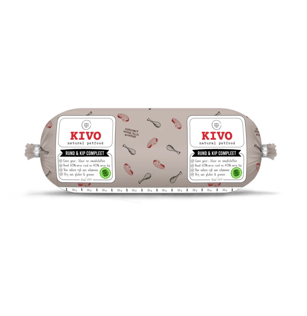 Kivo Hondenvoer Rund & Kip Compleet is een verse, diepgevroren maaltijd met 100% vers vlees en 0% fratsen. Bevat een compleet prooidier en natuurlijke vitaminen.