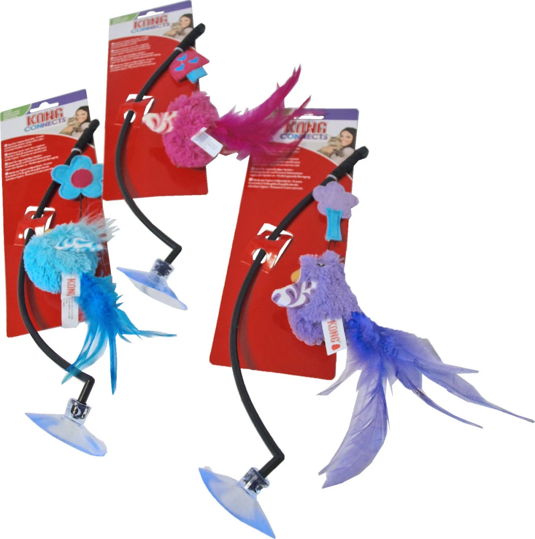 De Kong Window Teaser laat je kat besluipen, bespringen en overmeesteren. De Kong Window Teaser is eenvoudig te bevestigen op een glad oppervlak en biedt een actieve uitdaging voor katten, ook als je zelf niet met ze kunt spelen. Elk speeltje bevat hoogwaardig Noord-Amerikaans kattenkruid van Kong, felgekleurde veren en een kreukelgeluid zorgen voor extra stimulans.