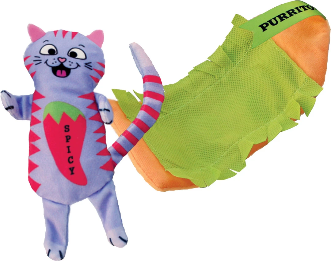 Kong Pull-A-Partz Purrito biedt twee speeltjes in één, gemaakt om de natuurlijke jachtinstincten van jouw kat te stimuleren. Het pluchen speeltje aan de binnenkant is ideaal voor sla- en springplezier, terwijl de klittenbandsluiting van de buitenwikkel en de kronkelgeluiden de aandacht van de kat vasthouden. Beide speeltjes zijn voorzien van catnip voor extra stimulance.