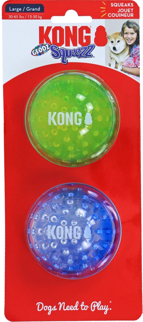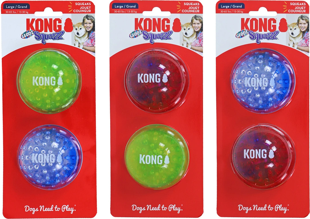 De Kong Squeez Geods Bal heeft een uniek ontwerp dat het apporteerplezier van jouw hond vergroot. De knetter- en piepgeluiden van de bal ontsteken het natuurlijk jachtinstinct van jouw hond. Het duurzame materiaal zorgt voor langer speelplezier. Het stuiteren van de bal vergroot de betrokkenheid van je hond, met name van puppy’s. De bal kan drijven en is dus geschikt om mee te apporteren op water.