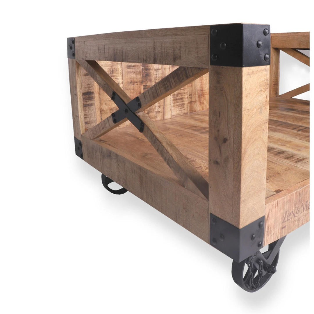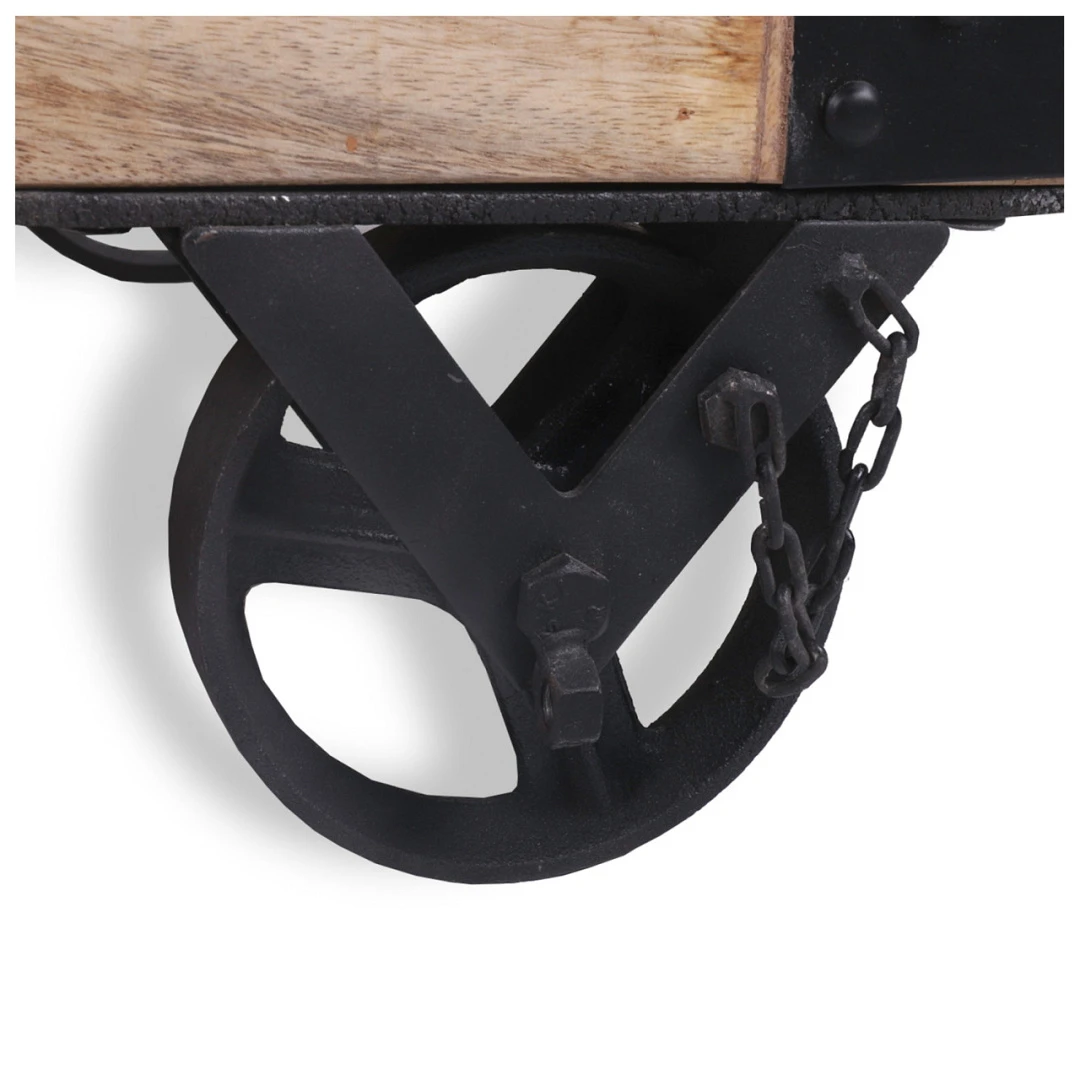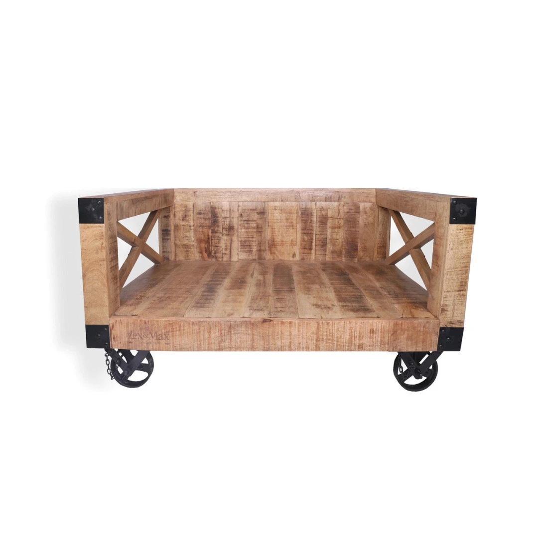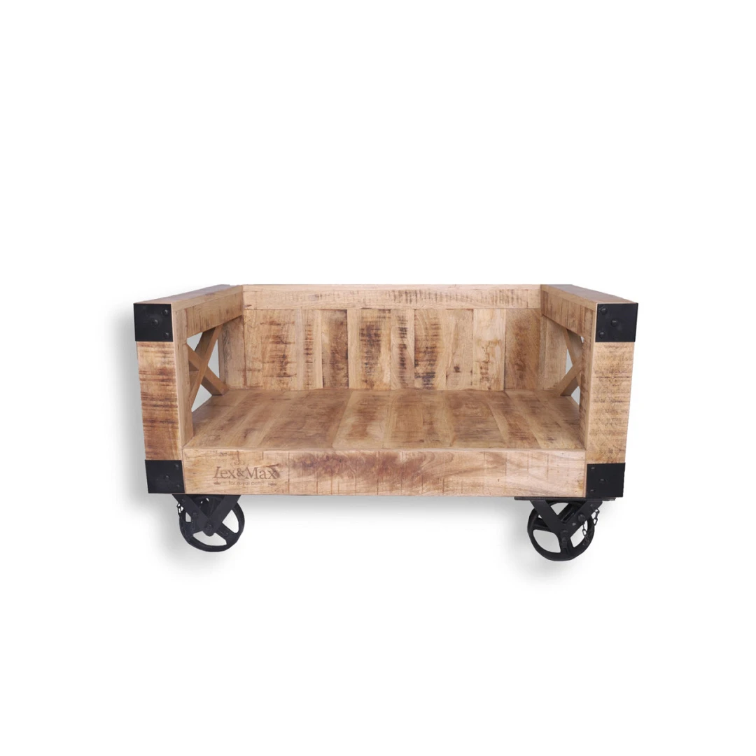 • De divan is gemaakt van mangohout en afgewerkt met metalen wielen en metalen decoratie. Twee wielen van de vier zijn te blokkeren middels een metalen pen.