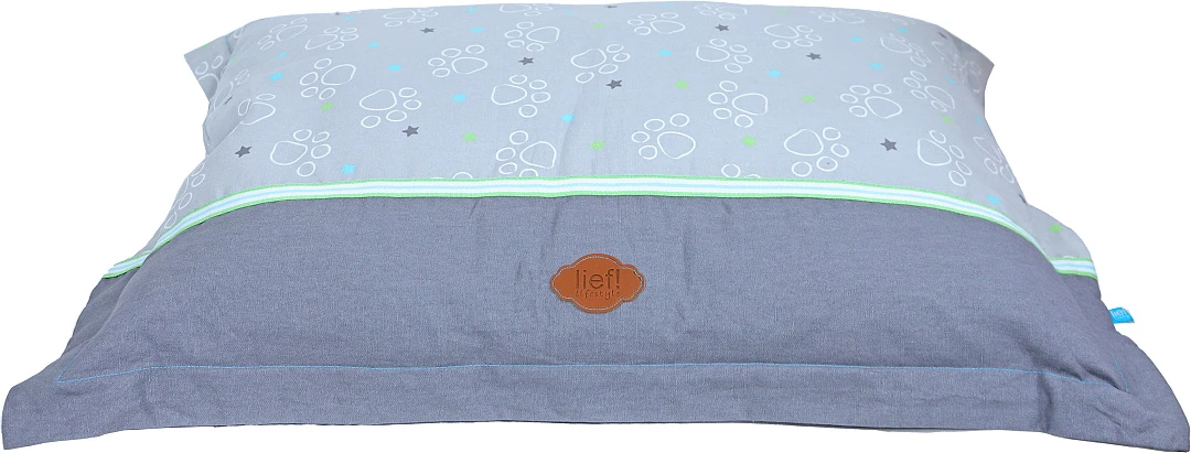 lief! lifestyle Boys hondenkussen Volant is een modern en luxe kussen, waar jouw hond tot rust zal komen en slaapplezier zal hebben. Het kussen is lichtgrijs en antraciet van kleur en heeft een Boys print en band. Jouw hond zal het echt als zijn eigen plek zien.