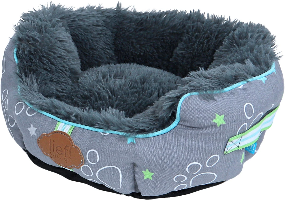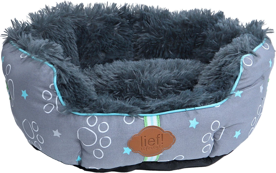 lief! lifestyle Boys hondenmand is een leuke huisdierenmand, met een lekkere zachte binnenkant van antracietkleurig pluche. De buitenkant van de slaapmand is gemaakt van grijze stof met een pootjes print en Boys details. Hier zal jouw huisdier heerlijk in kunnen slapen!