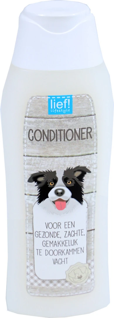 lief! conditioner voor honden zorgt voor een verzorgde en glanzende vacht bij de hond en heeft de heerlijke geur. De diep verzorgende conditioner zorgt voor een gezonde en glanzende vacht. De ingredienten zorgen voor het vasthouden van vocht en extra elasticiteit en helpen bij het herstellen van de zachtheid en vitaliteit van de vacht.