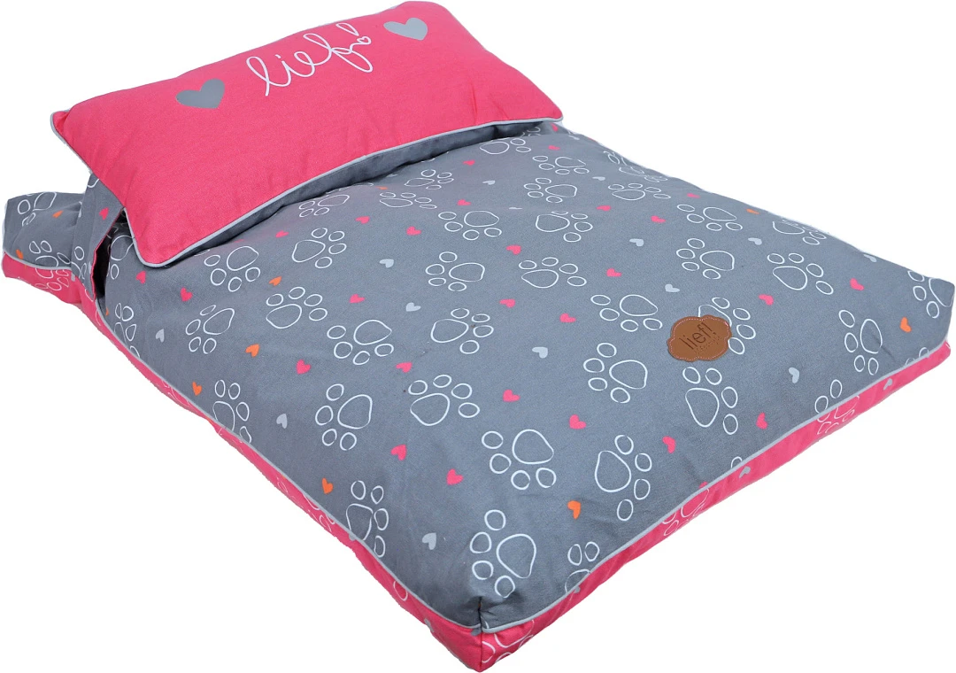 lief! lifestyle Girls hondenkussen Comfort 2-zijdig is een compleet luxe hondenkussen waar jouw hond heerlijk op kan liggen. Het bed is tweezijdig te gebruiken en heeft een extra kussen met een “LIEF!” opdruk (ook tweezijdig). De rozerode kleur aan de ene kant en donkergrijze aan de andere kant, is helemaal afgemaakt met een vrolijke Girls- en pootprint aan beide kanten.