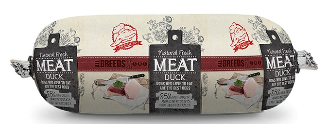 Natural Fresh MEAT hondenworst duck is een volledig natvoer met verse eend, hoog in omega 3 en 6, voor honden van alle rassen.