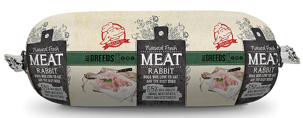Natural Fresh MEAT hondenworst rabbit is een volledig natvoer met vers konijn. Geschikt bij eiwit intolerantie.