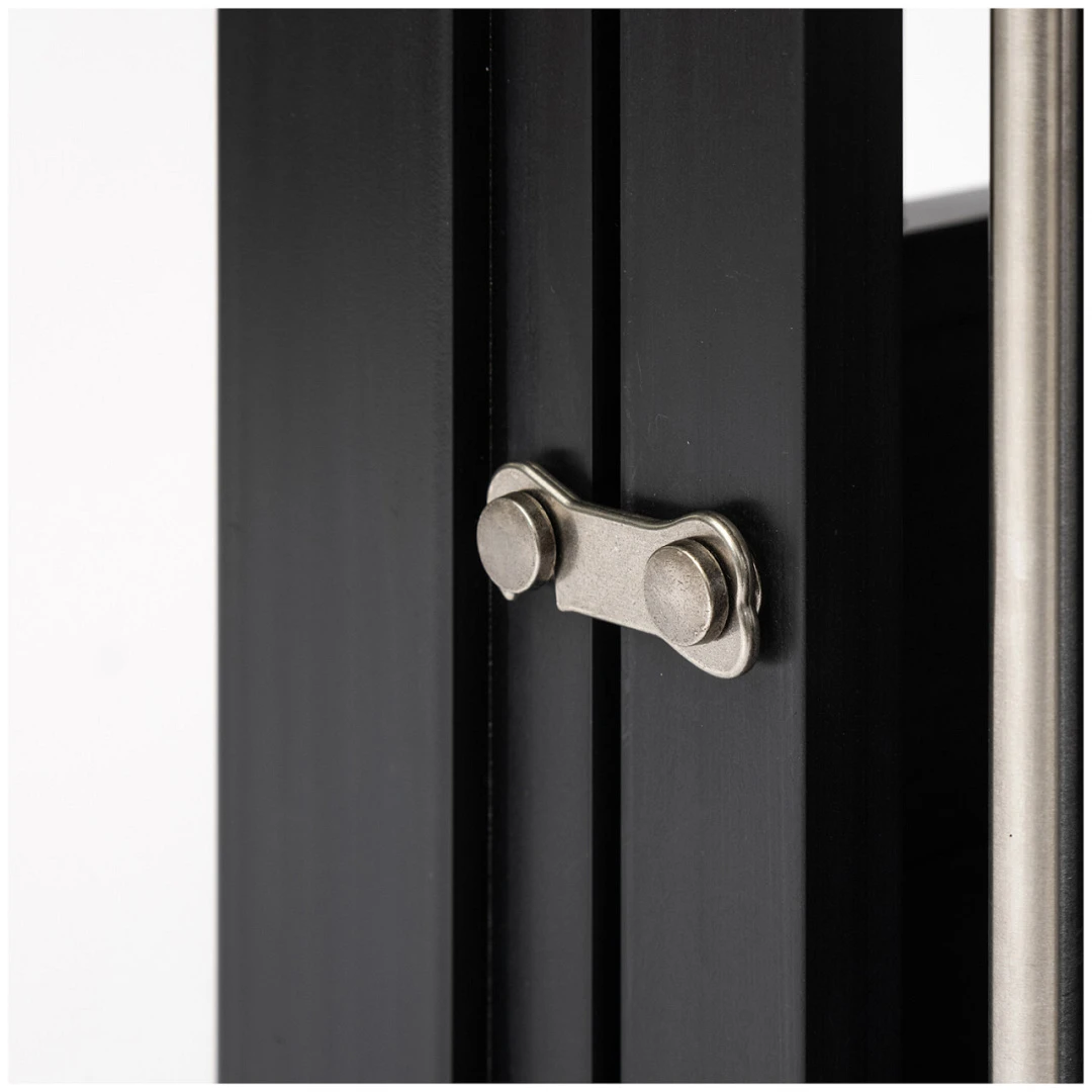 Het deurtje van de Crate sluit stevig en kan niet per ongeluk worden geopend. Kleine en middelgrote benches hebben één stevige vergrendeling. Grote en extra grote benches hebben twee stevige vergrendelingen. De spijlen zijn gemaakt van roestvrijstalen buizen.