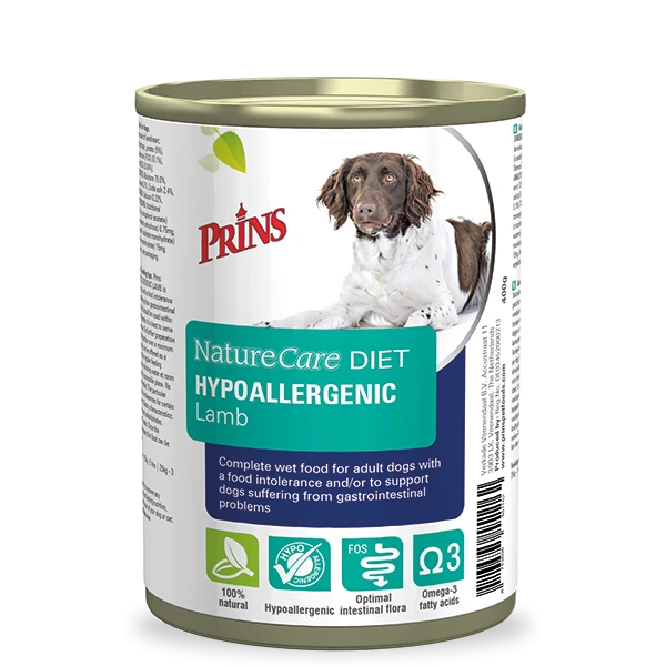 Prins NatureCare Diet Dog Hypoallergenic Lamb is een natvoeding speciaal voor honden met huid- en vachtproblemen door een voedselovergevoeligheid en/of ter ondersteuning van maagdarmproblemen. Deze speciale dieetvoeding is ontwikkeld in samenwerking met dierenartsen en bevat één eiwitbron en koolhydraatbron die een verminderde kans op een overgevoeligheidsreactie geven.