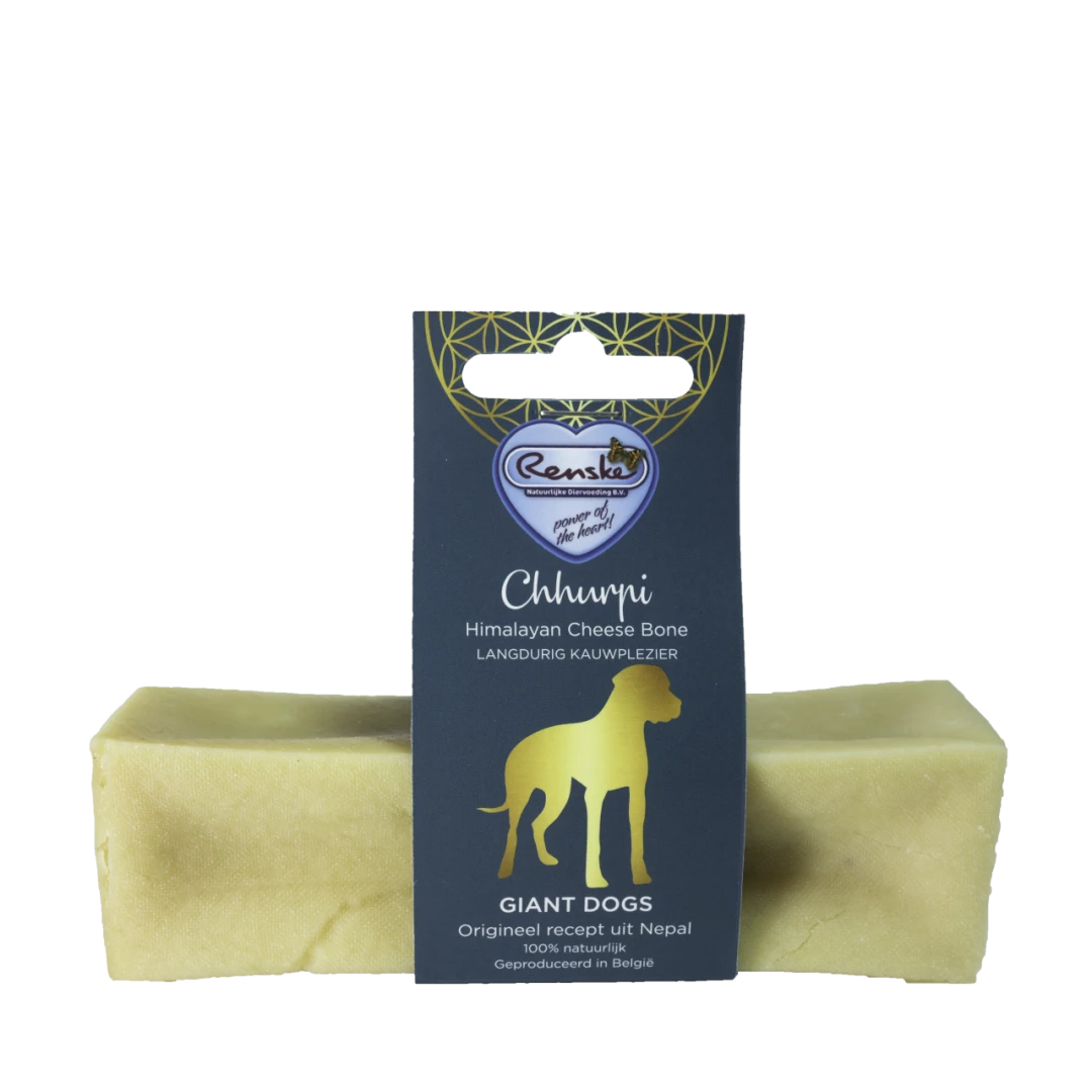 De Renske Chhurpi kauwkluif is een natuurlijke hondensnack gebaseerd op een eeuwenoud recept uit de Himalaya. Handgemaakt op basis van een traditionele methode, is deze kauwsnack een echte verwennerij! Een gezonde snack met een onweerstaanbare smaak!