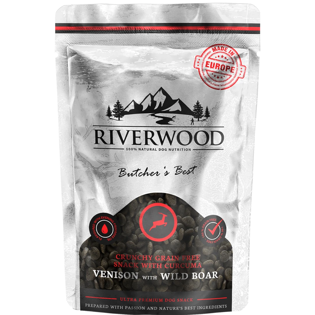 Riverwood Butchers Best Venison & Wild Boar is een natuurlijke, krokante, graanvrije hondensnack op basis van hert en wild everzwijn en is geschikt voor volwassen honden van alle rassen.